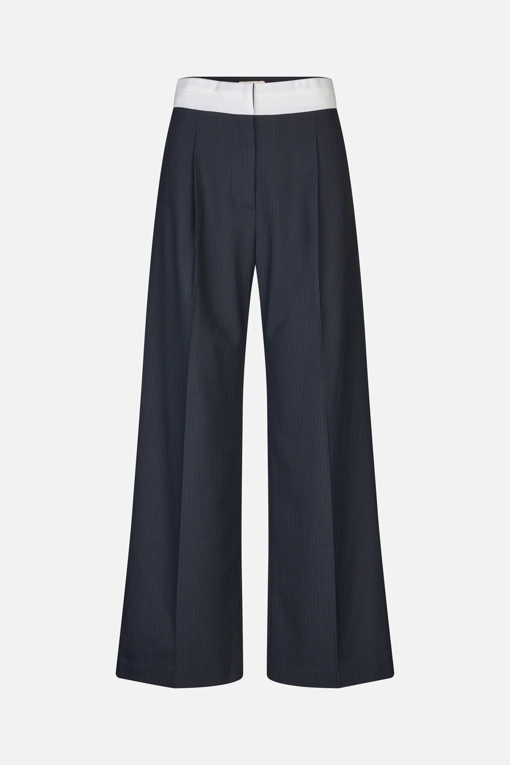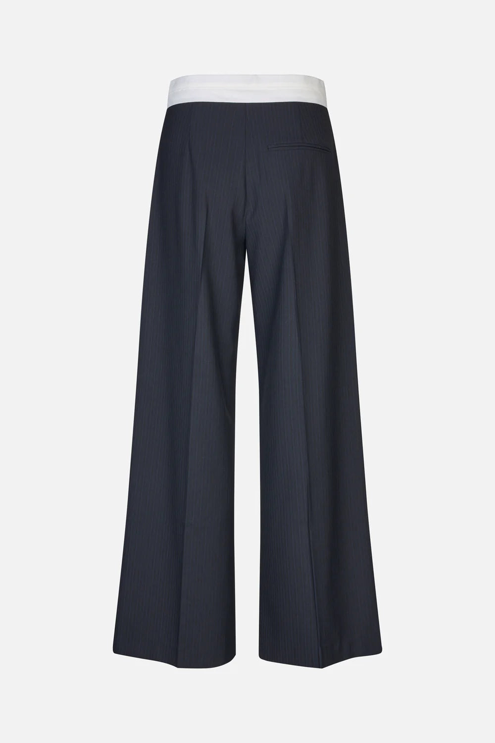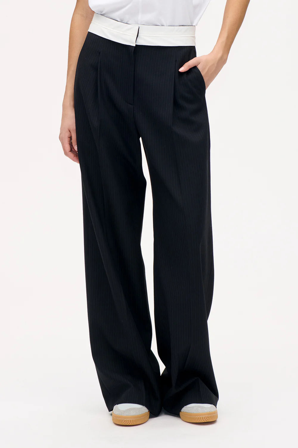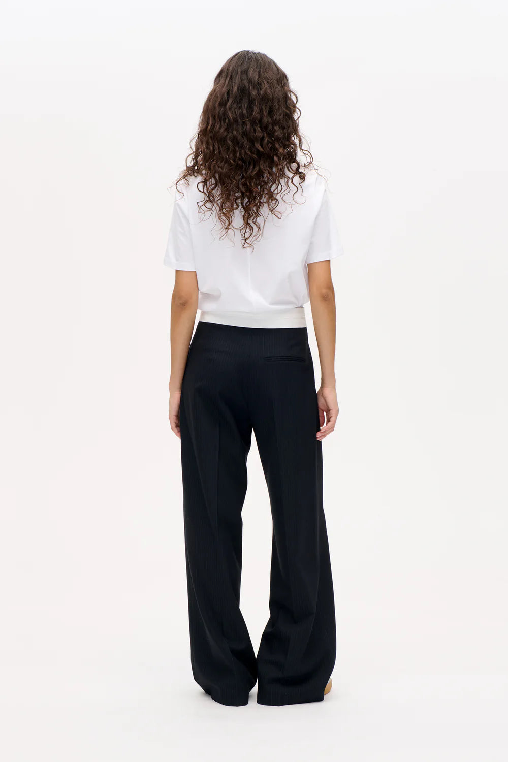 The Neyat Trousers are truly a timeless work wear staple with a pinstriped look. Designed with a high waist and wide legs, the trousers have a cool inside-out waistband with elegant pleats underneath for a classic yet modern feel. Pair them with one of our shirts or tops for the ultimate chic office look.