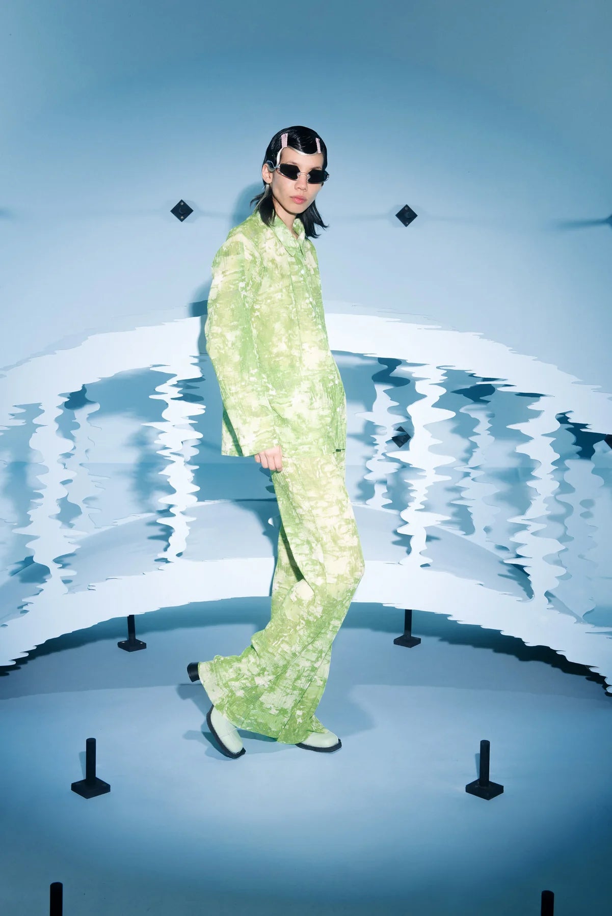 Sway Mesh Plisse Pants - Green Riddle by Henrik Vibskov