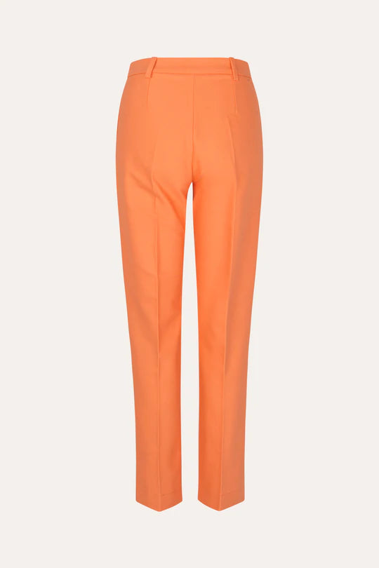 Annabella Pants in Grapefruit Orange. Classic tailored pants with straight leg silhouette, elegant pleats and side pockets. Organic Cotton blend.