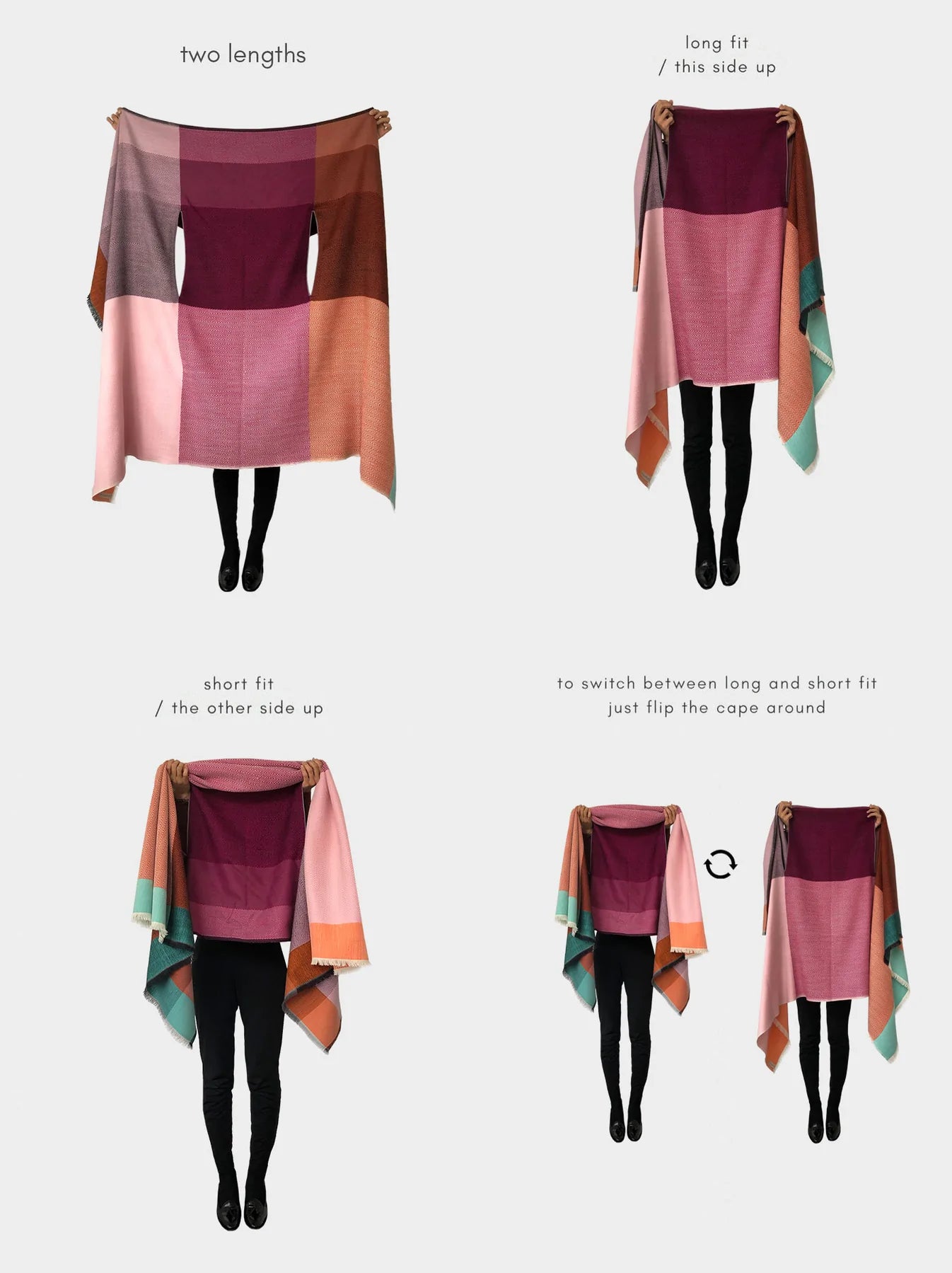 Highly versatileWith more than 15 ways to wear Cape Infinity, your wardrobe can always look new every day of the week. With just a FLIP create multiple styling options – short, long, tucked… wear it like a poncho, vest, dress or sweater. Wear it to work, an evening out or on a long plane ride.