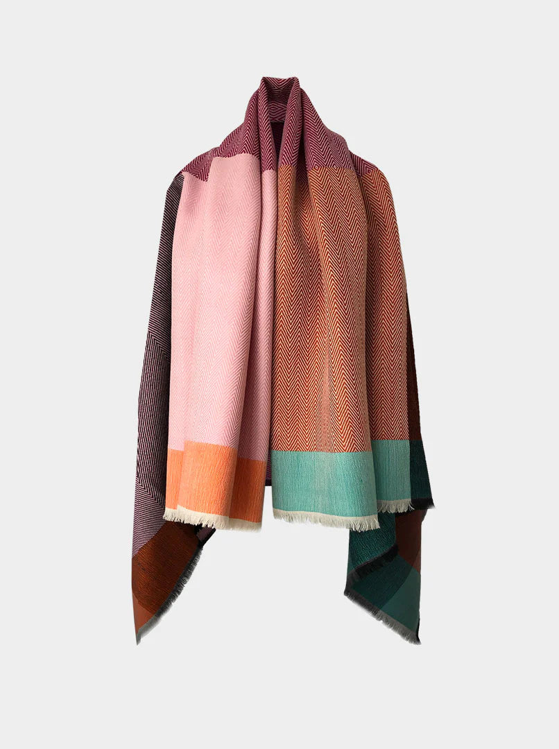 One-of-it's kindDesigned in Amsterdam with sustainable design philosophy, each poncho cape is individually handmade by 15 rural artisans using locally sourced organic Himalayan wool–eliminating carbon footprint and introducing thoughtful production.