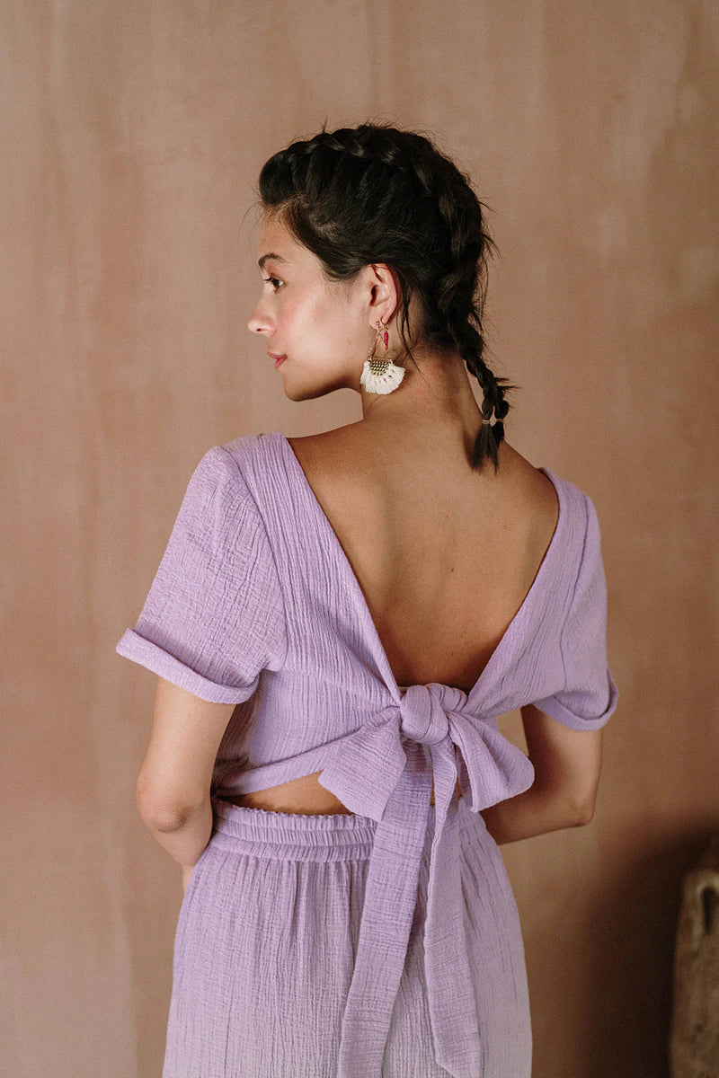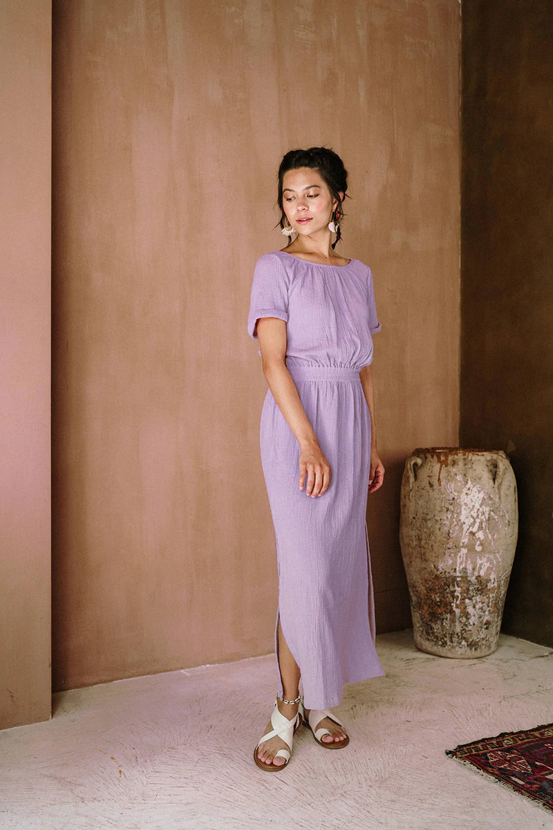 This head turning lavender colored maxi dress has the most beautiful back you've ever seen. No worries, you can wear a bra underneath without being visible. It is made of very soft, luxurious feeling fabric. The dress turned out lighter on the picture, to give you a good example of the color please take a look on the image of the fabric swatch.