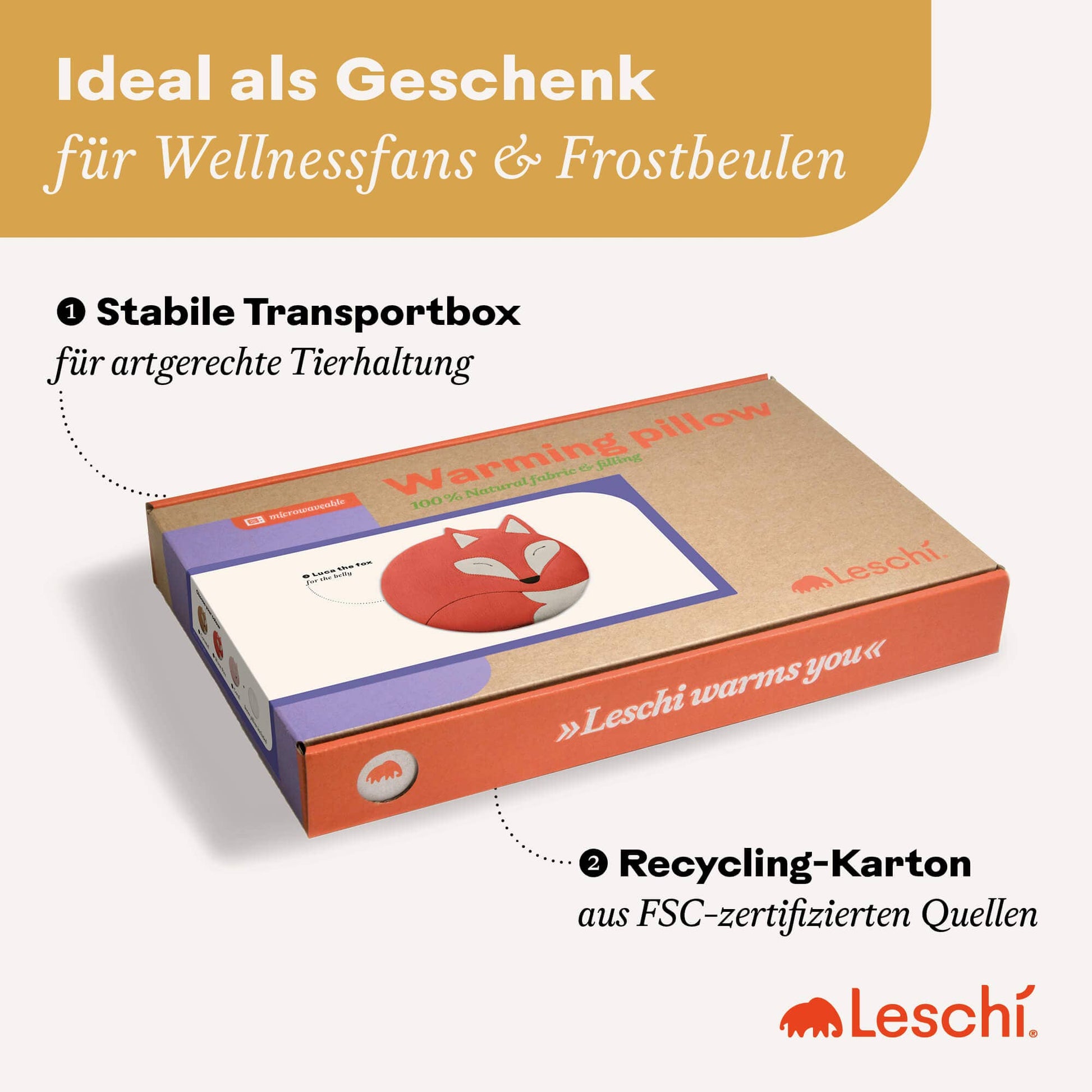 LOVING GIFT PACKAGING Each grain pillow comes in an eco-friendly gift box made from recycled materials – ideal for gifting. PRODUCT FEATURES - Cover: Organic cotton - Filling: Organic wheat - Gift packaging: 100% recycled cardboard - Microwave safe - Washable cover - German quality brand for over 20 years