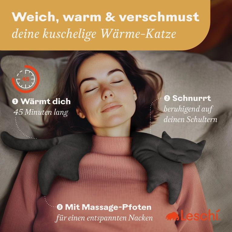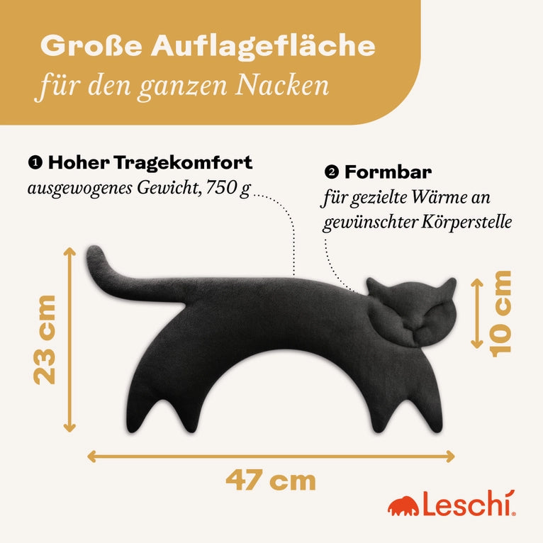 Organic Grain Pillow Neck Heating Pad Cat- Black by Leschi