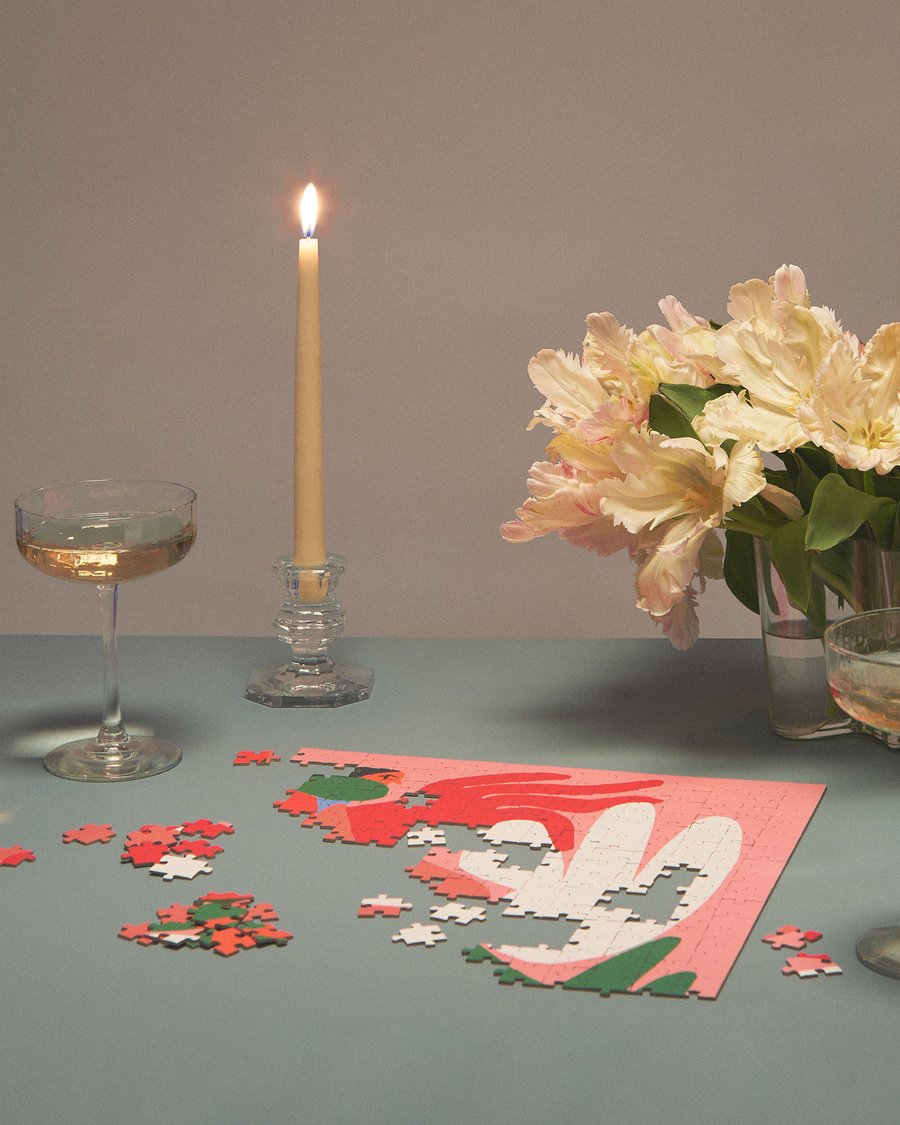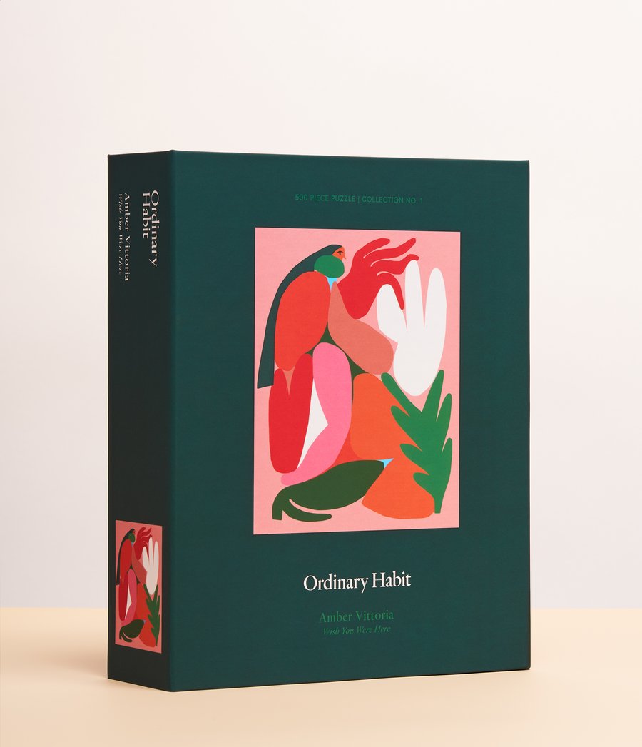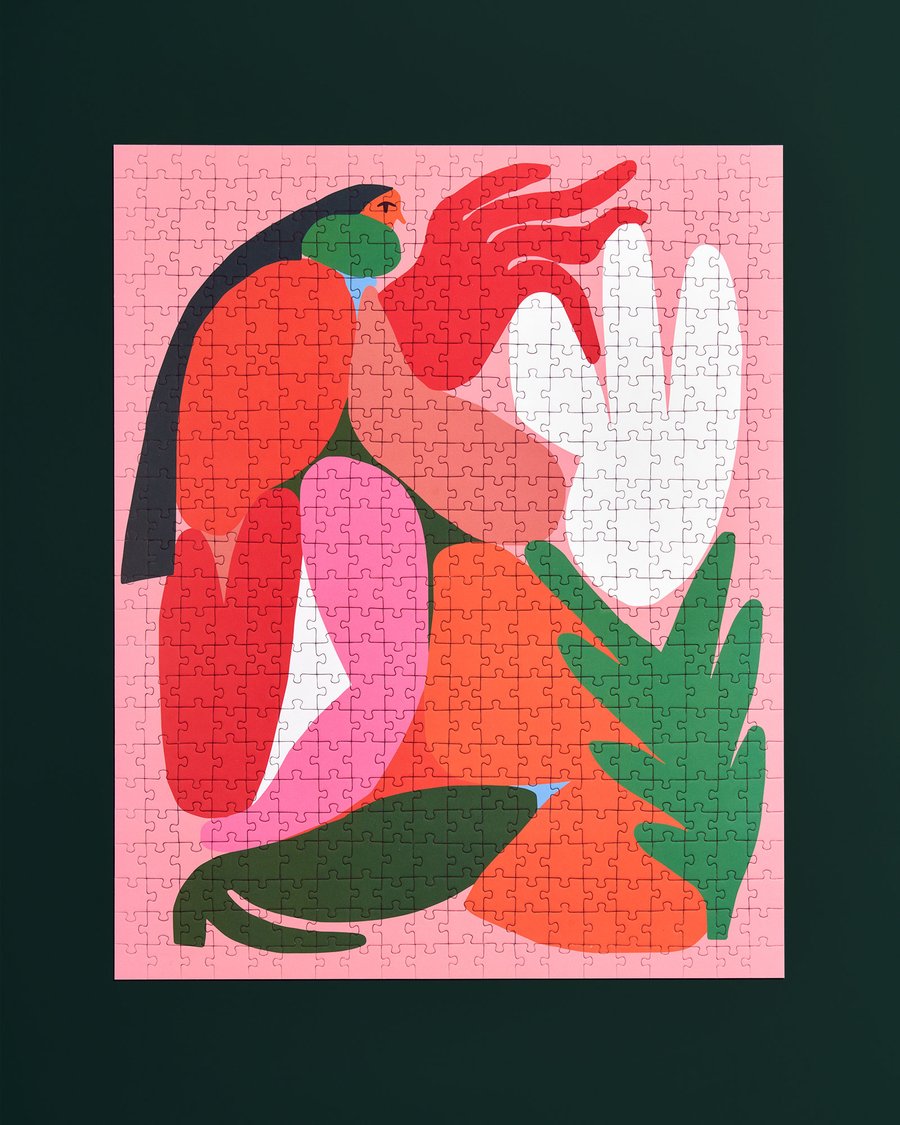 Once assembled, this deceptively simple-looking painting by Amber Vittoria is a strikingly geometric ode to the female figure. Disassembled, her piece becomes wildly abstract, the kind of puzzle you’ll come back to again and again.