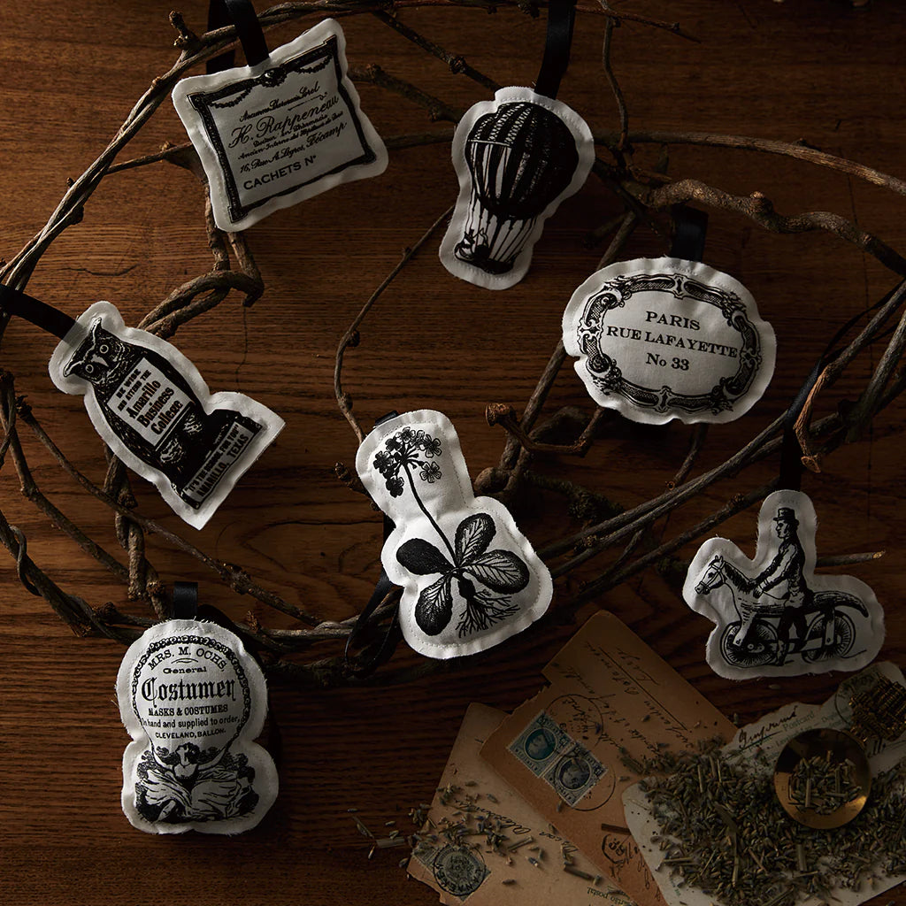 These sachets are modeled after old European illustrations and labels.
